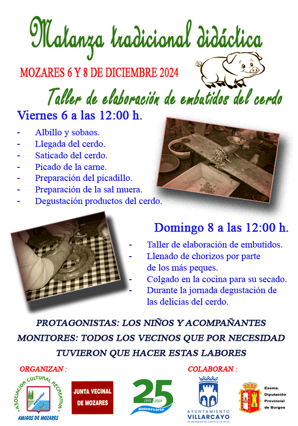MOZARES DE NUEVO CELEBRARA LAS JORNADAS DE MATANZA DIDACTICA TRADICIONAL LOS PROXIMOS 6 y 8 DE DICIEMBRE 2024