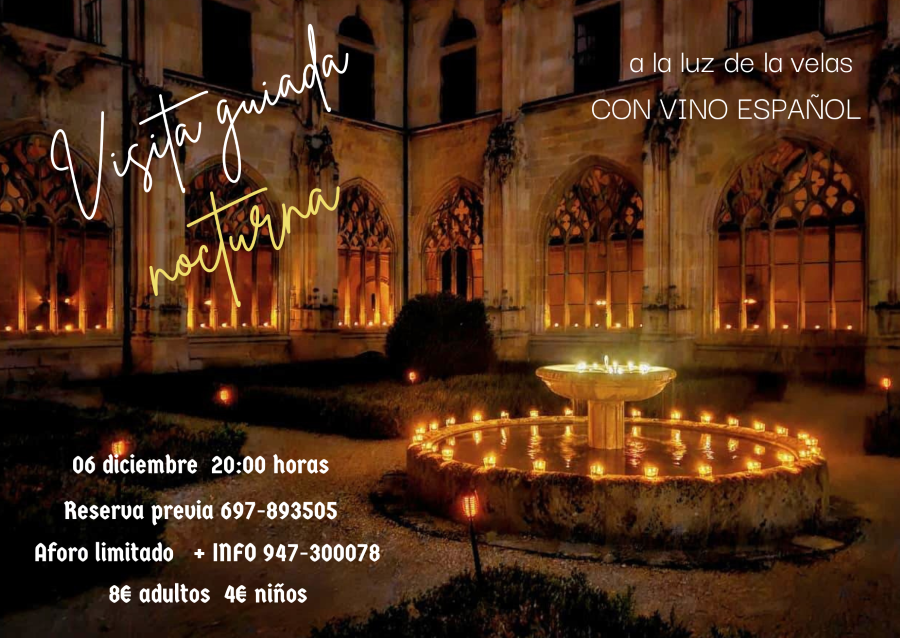Monasterio de San Salvador - Oña, Plaza Convento 5, Oña 20:00 / 22:00 Sábado, 6 Diciembre 2025 Visita guiada nocturna Visita guiada noctura a la luz de las velas, con vino Español