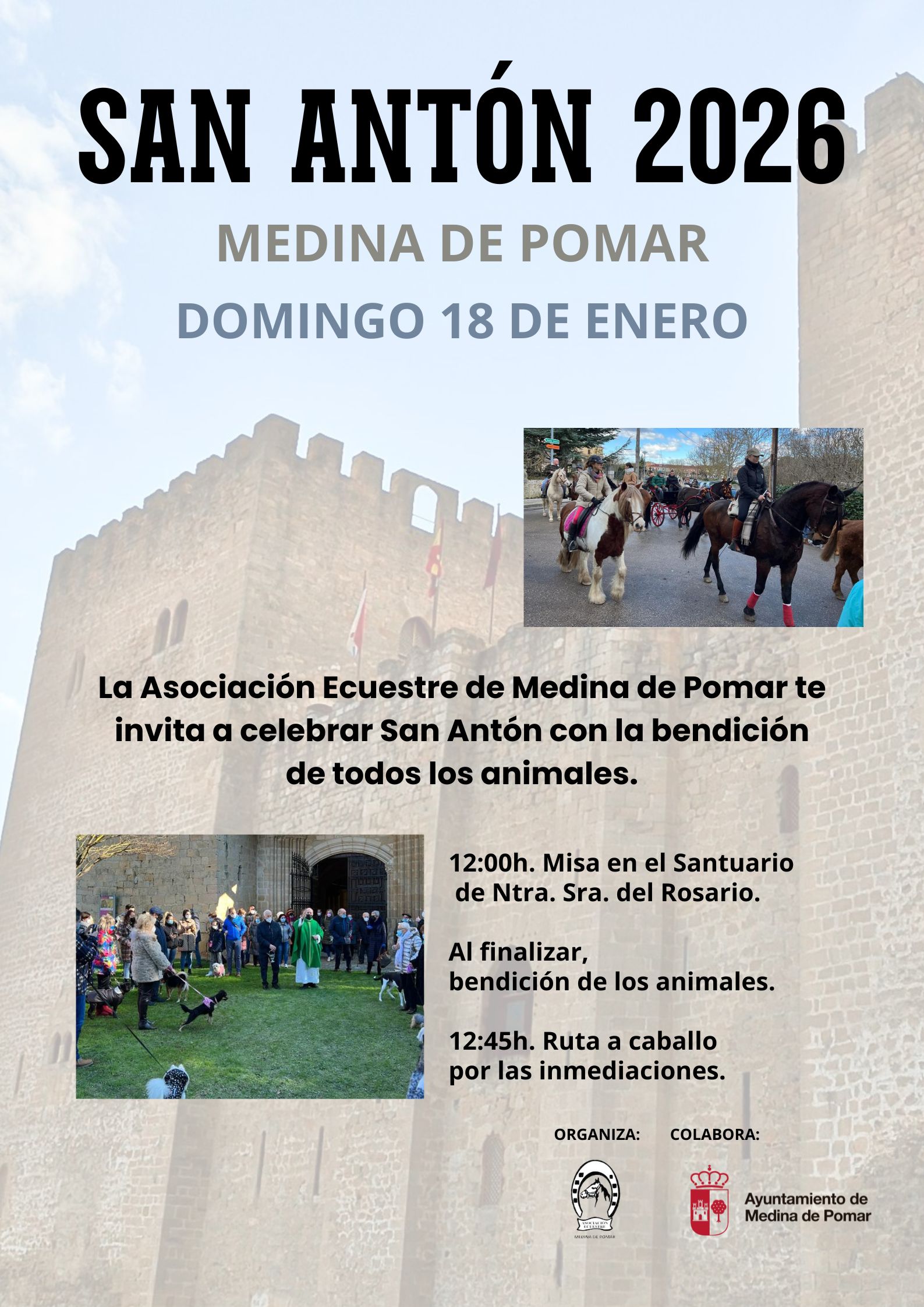 La Asociación Ecuestre de Medina de Pomar te invita a celebrar San Antón con la bendición de todos los animales.