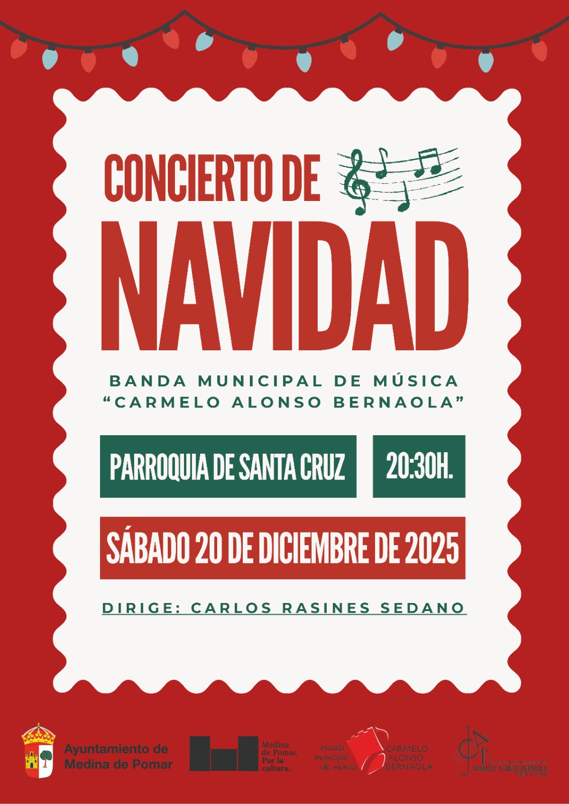 Parroquia de Santa Cruz - Medina de Pomar, C/ Santa Cruz, Medina de Pomar 20:30 / 21:30 Sábado, 20 Diciembre 2025 CONCIERTO DE NAVIDAD BANDA MUNICIPAL Dirige: Carlos Rasines Sedano